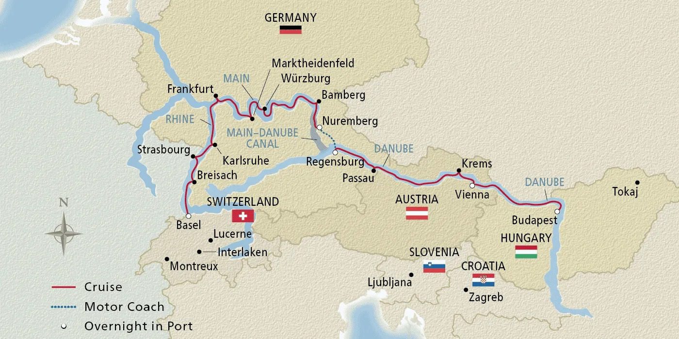 Sail along the Main and Rhine to see Basel, often regarded as Switzerland’s cultural capital, and sample the distinctive flavors of the Alsace region. Discover Frankfurt, a high-powered business hub, and visit the historic towns of Bavaria and Baden-Württemberg. See Salzburg, explore Göttweig Abbey and make dumplings with Wachau Valley apricots. Celebrate the musical heritage of Vienna and experience the healing qualities of Budapest’s thermal baths.